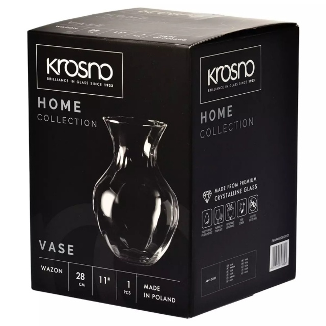 Krosno Home klassische Vase 280 mm Es ist die Essenz von Eleganz und Einfachheit, der die Schönheit von Blumen und Pflanzendekorationen perfekt zur Geltung bringt. Seine harmonische, schlanke Form macht es die ideale Wahl für klassische und moderne Innenräume. hergestellt aus kristallines Glas höchster Qualität, erfreut perfekte Klarheit, Haltbarkeit und Kratzfestigkeit.
